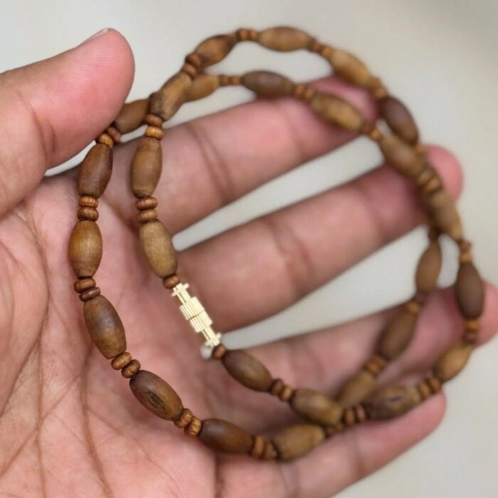 Rare Tulsi Root Kanthi Mala for Devotees, handcrafted in India. Ideal for mantra chanting, meditation, and daily spiritual practices. Limited stock available.