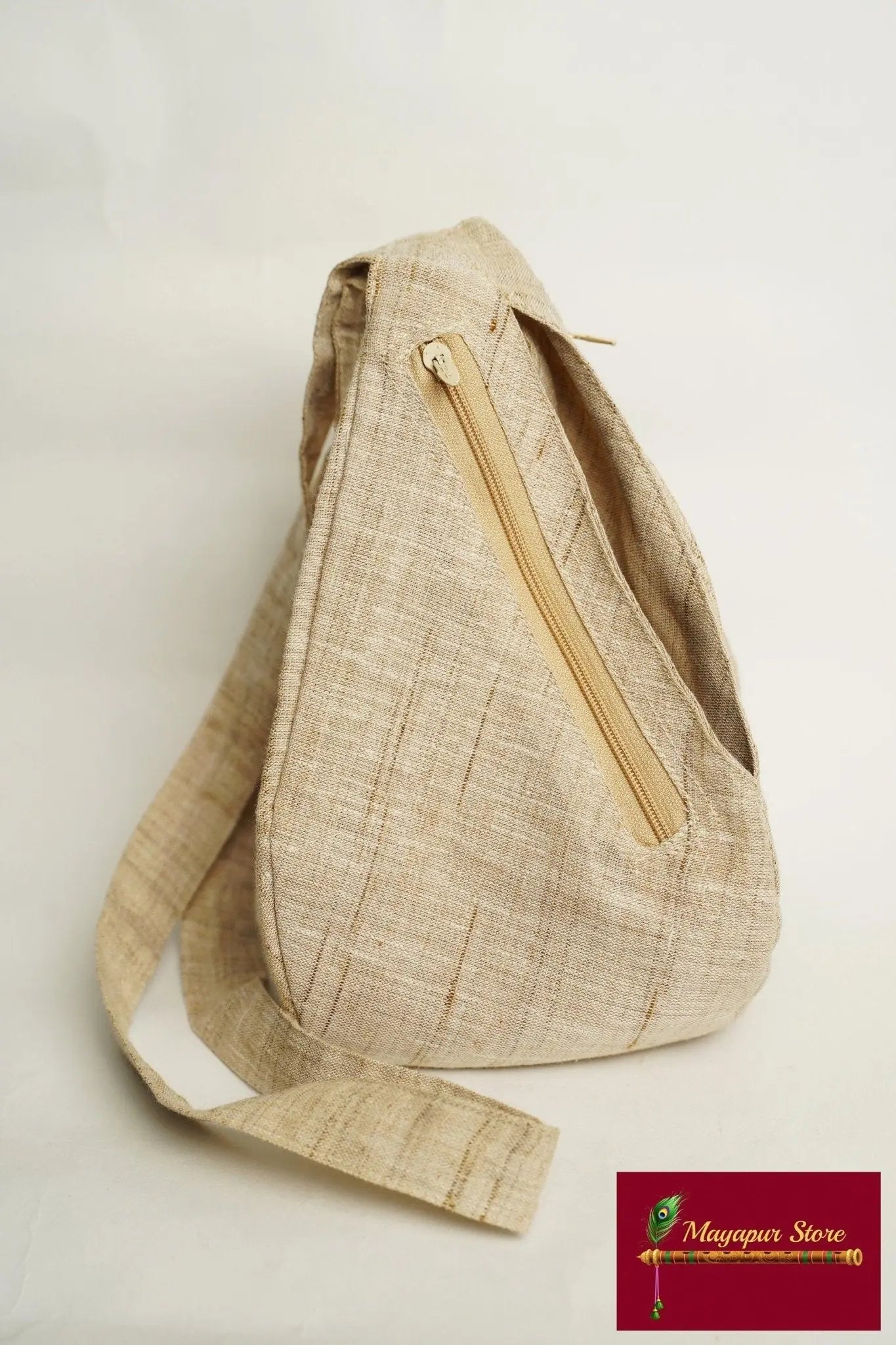 Handmade Jute/Khadi Hare Krishna Japa Bag to protect and carry your sacred beads. Lightweight, eco-friendly, and perfect for daily chanting.