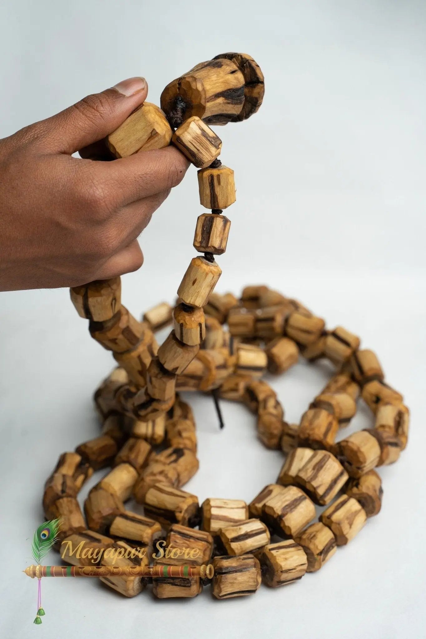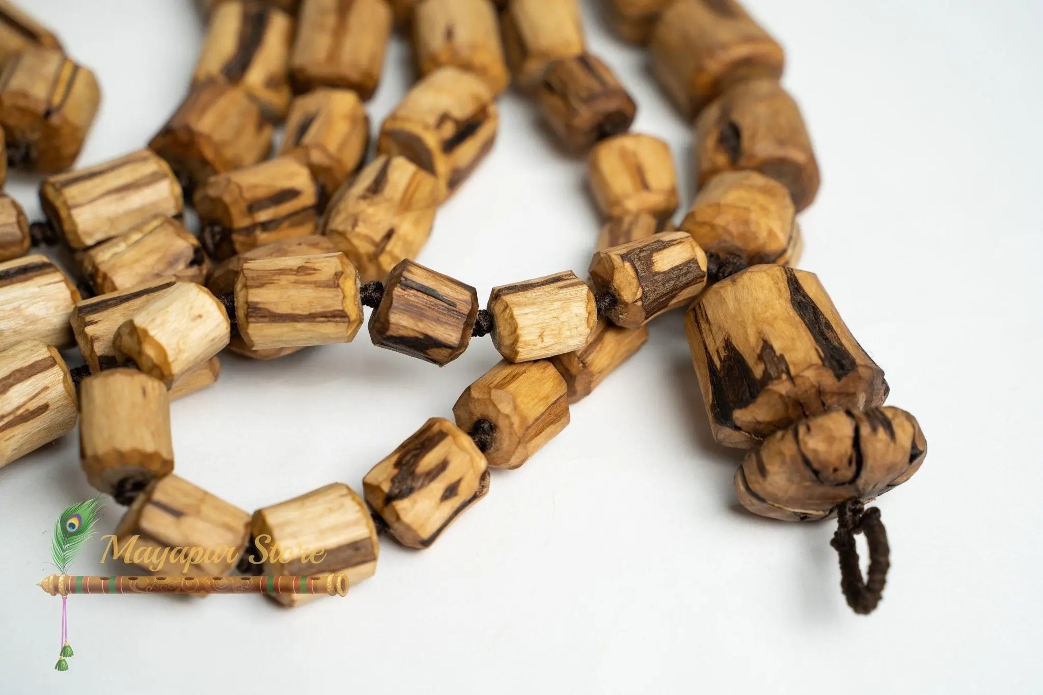 Tulsi Japa Mala with 108 handcrafted beads made from pure Tulsi wood. Available in 16mm, 20mm, 24mm, and 30mm. Ideal for chanting and Bhakti Yoga. Order now from Mayapurstore.